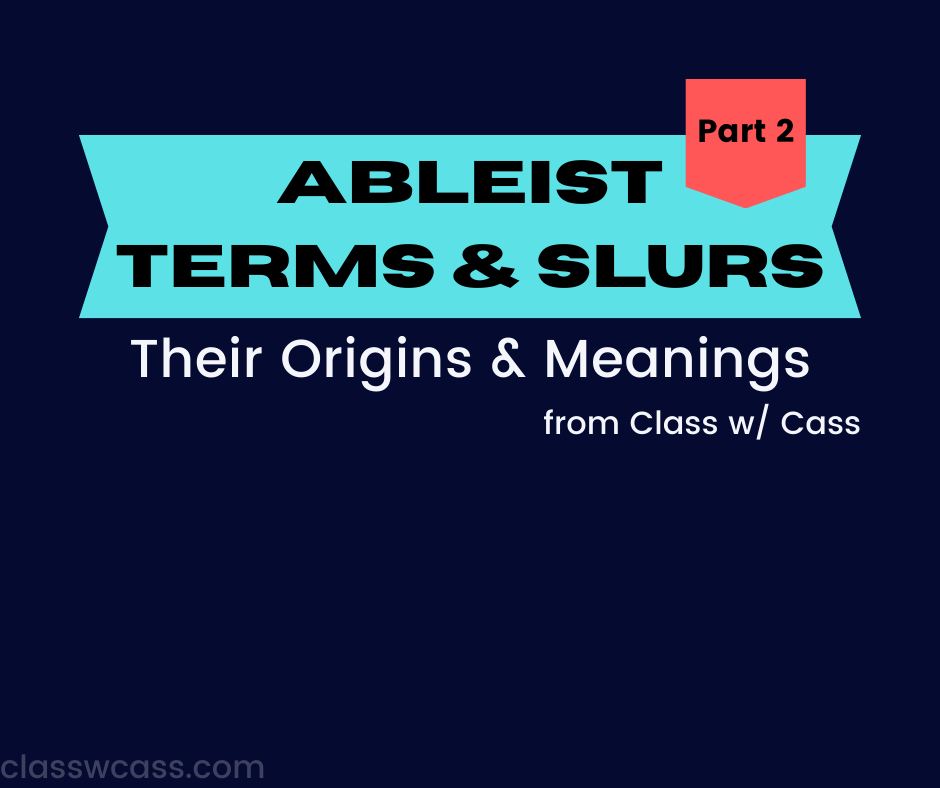 Not a single one of these terms is neutral and although some people in our communities have worked to “reclaim” slurs, it is never okay for someone who is not disabled or from the marginalized target group to casually use the term today.