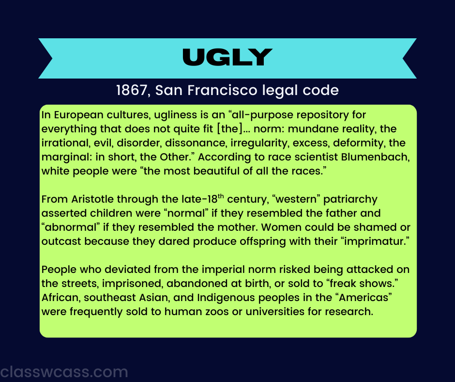 - The Ugly Laws: Disability in Public by Susan Schweik (2009)